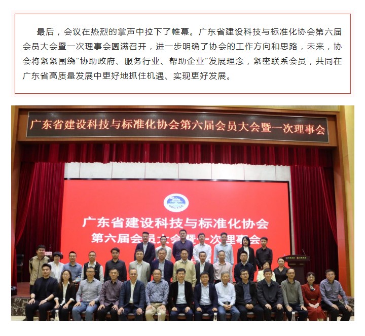 廣東省建設(shè)科技與標準化協(xié)會第六屆會員大會暨一次理事會會議順利召開
